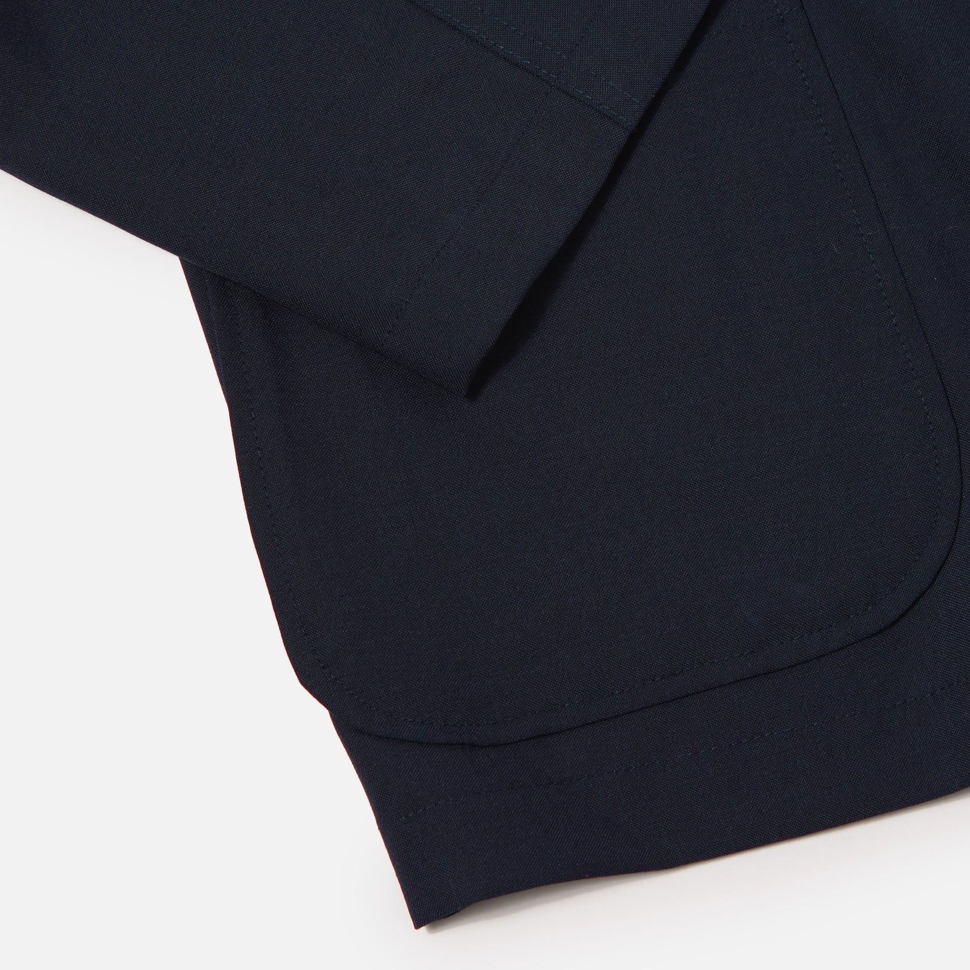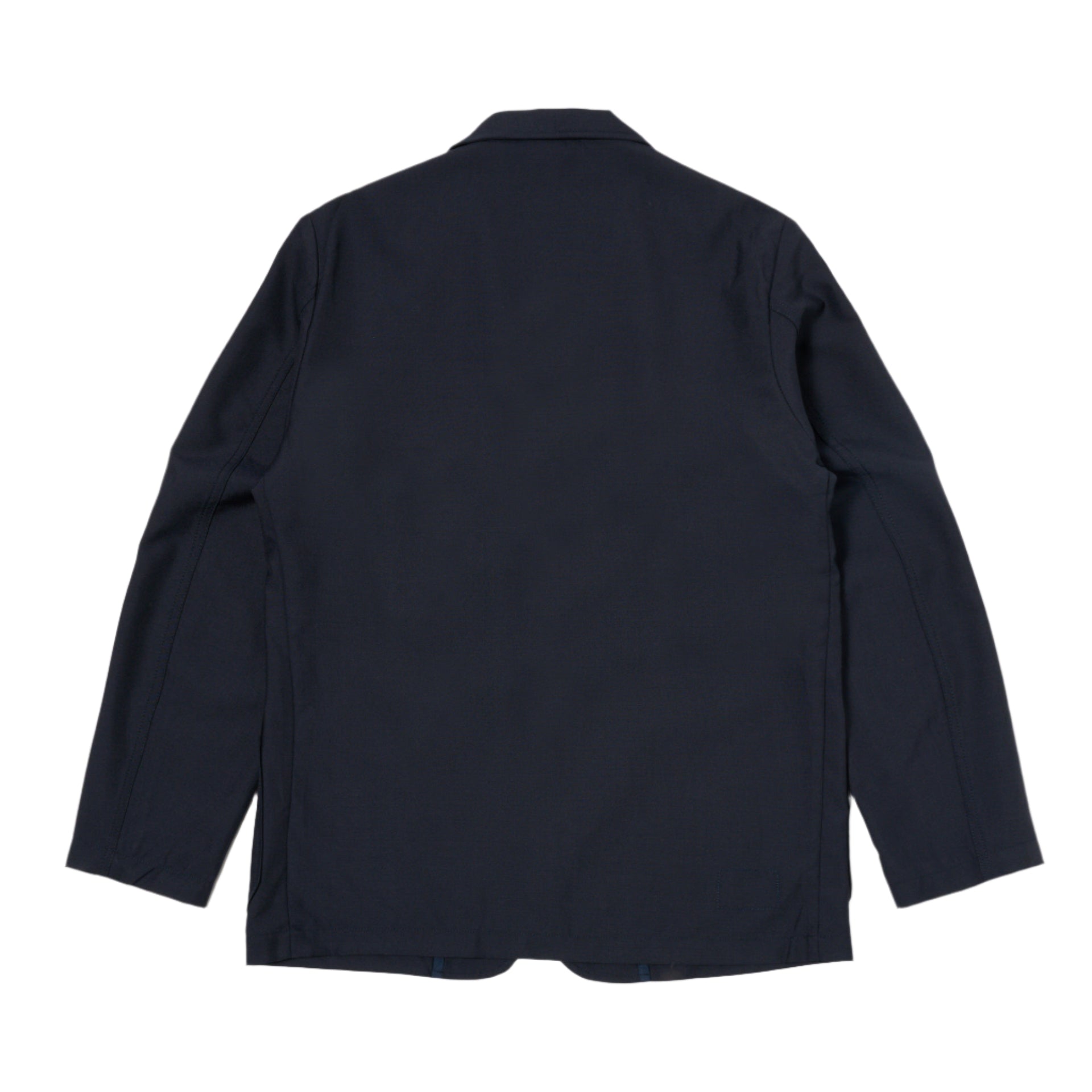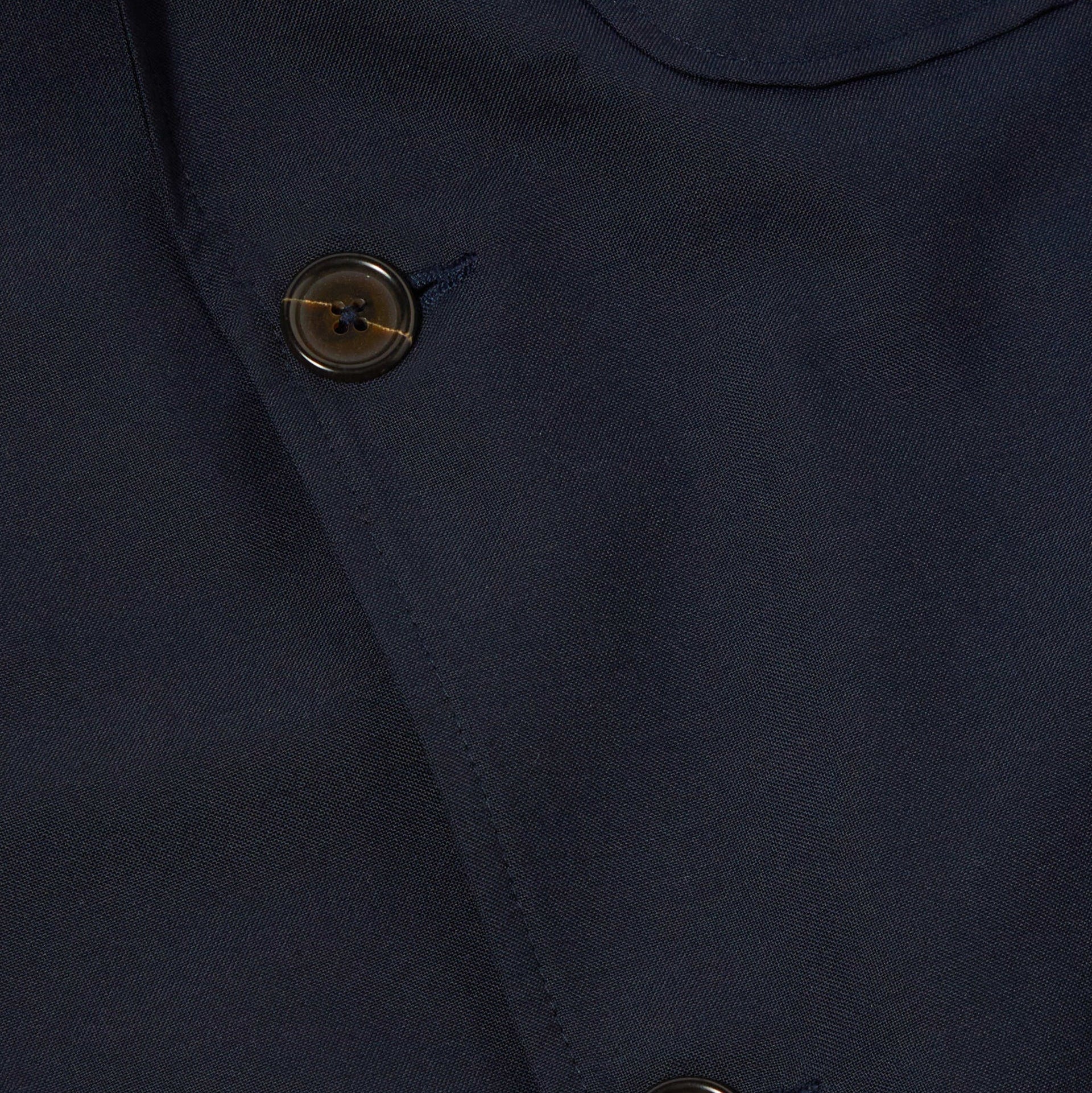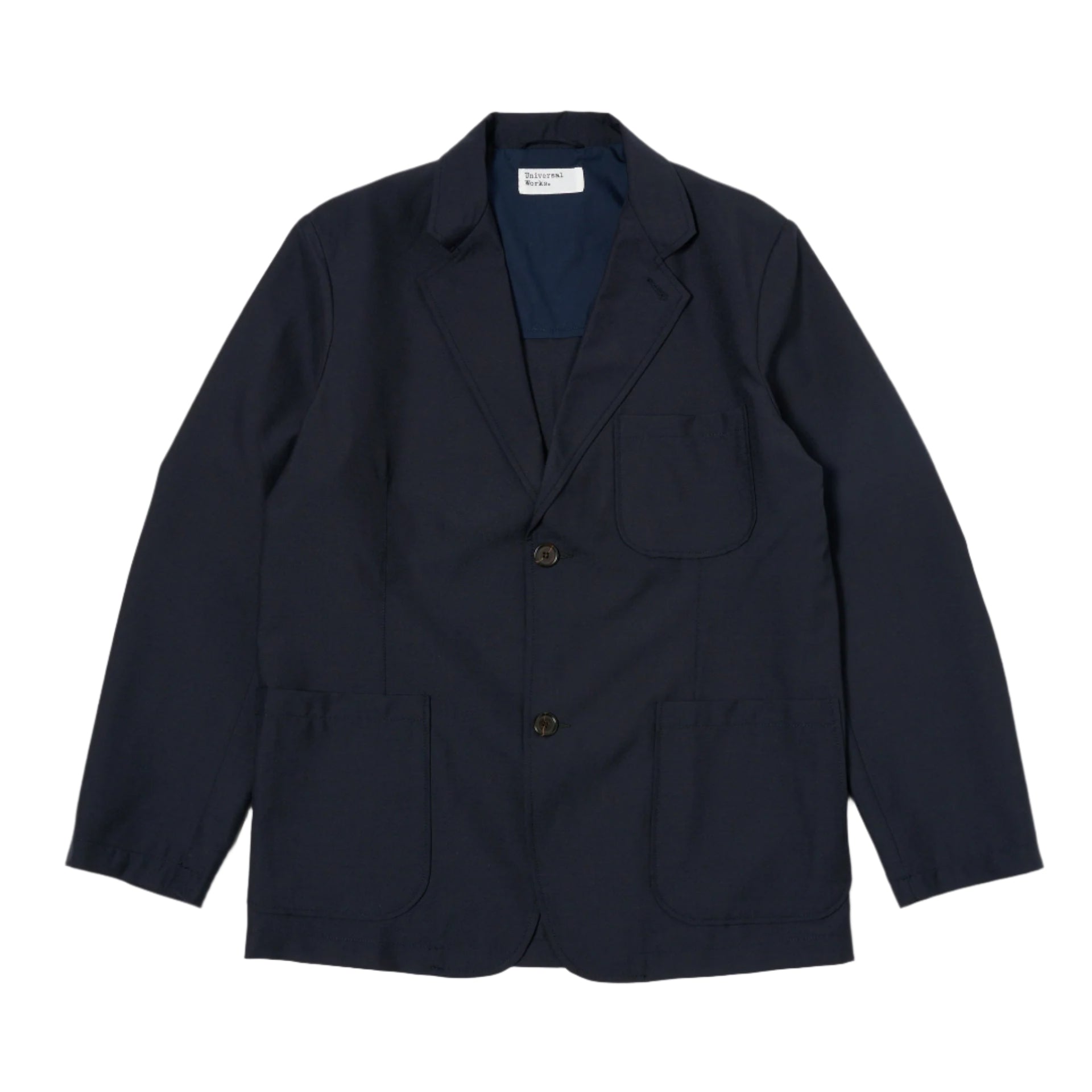 A new contemporary-looking jacket, with slight shaping, a longer, slightly wider lapel and two-button fastening. The fit is loose and unstructured, bringing a casual fit to a formal style.