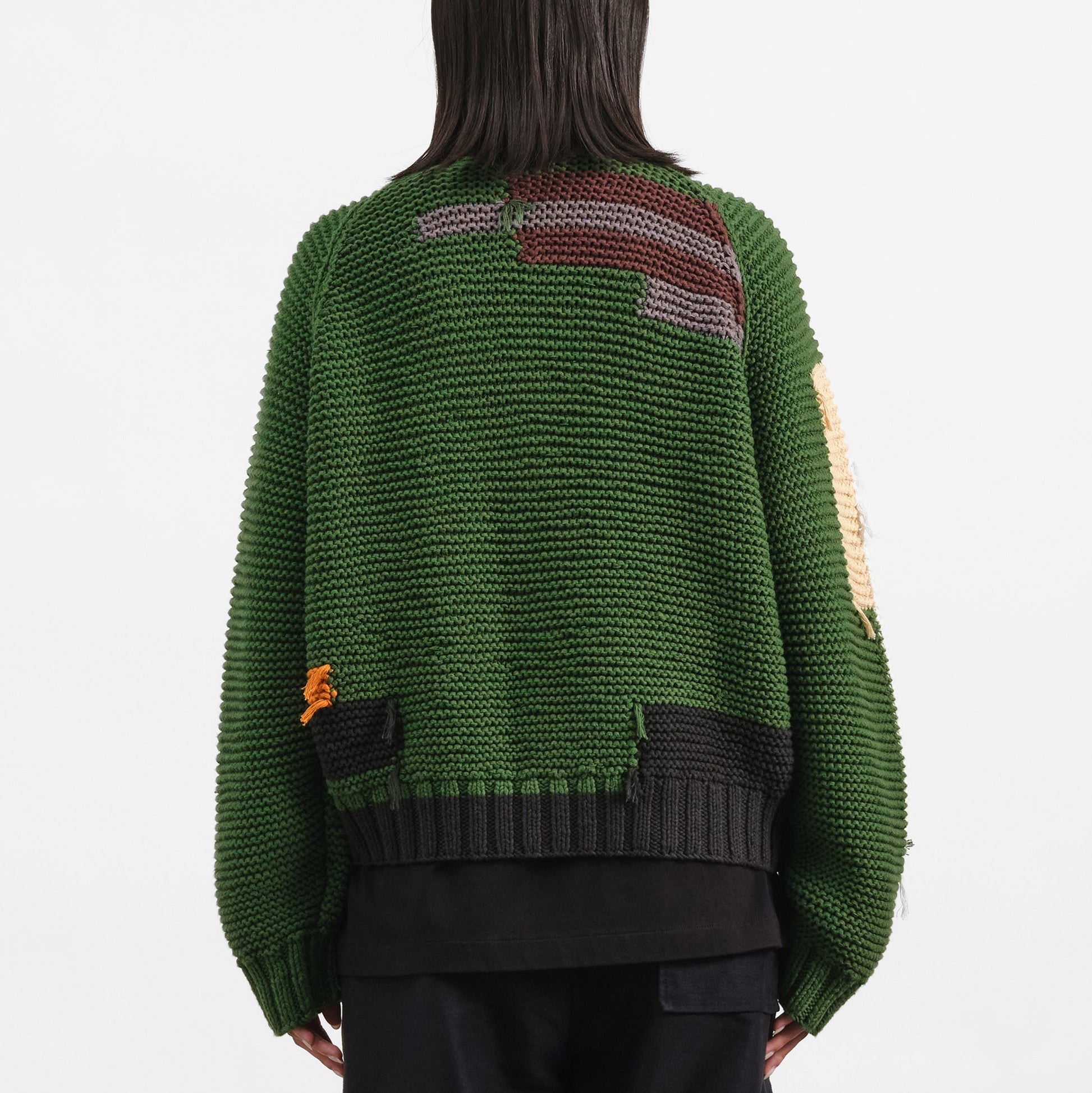 - Hand knitted yarn end detail