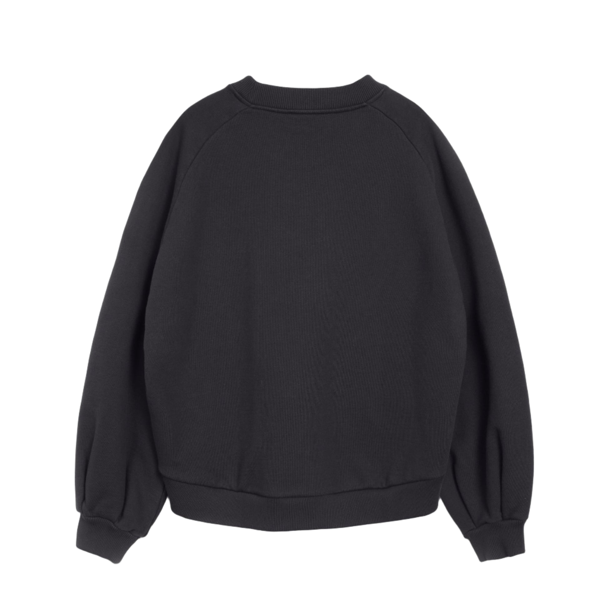 Curved jersey sweatshirtPortuguese cotton jerseyHeavyweight loopbackBellow shaped raglan sleevesChunky rib knit hem and neckCurved hemRelaxed fit